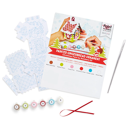 - Kit contains all of the items need to paint your own paint-by-number 3D gingerbread house